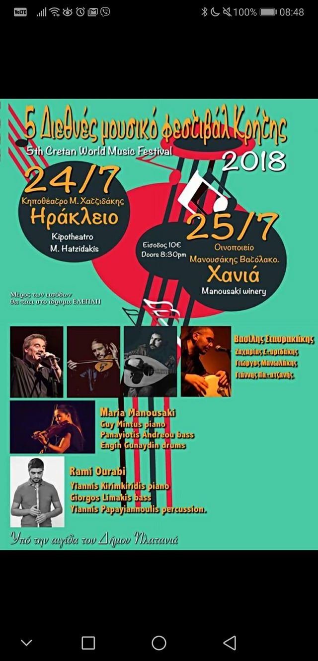 5th Cretan World Music Festival – Vatolakkos 25th July