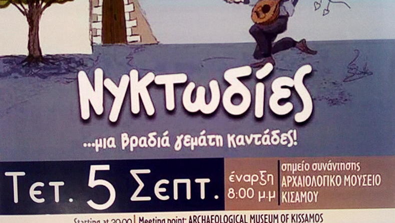 Read MoreSing with us in the alleys of Kissamos An evening full of ‘mantinades’ 5 September, h 20:00 Archaeological Museum, Kissamos
