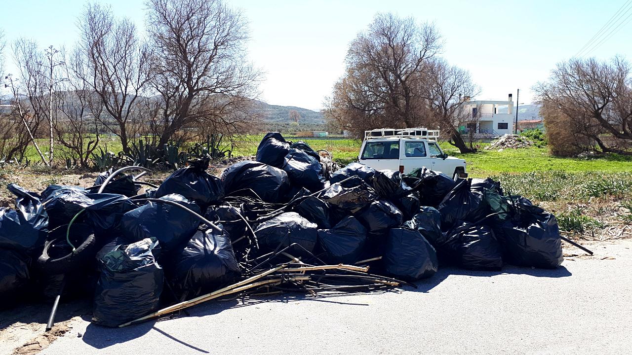 We also had the support of two tractors gathering the heavy bags, rubbish bags and gloves supplied by the Municipality of Kissamos and by local businesses.