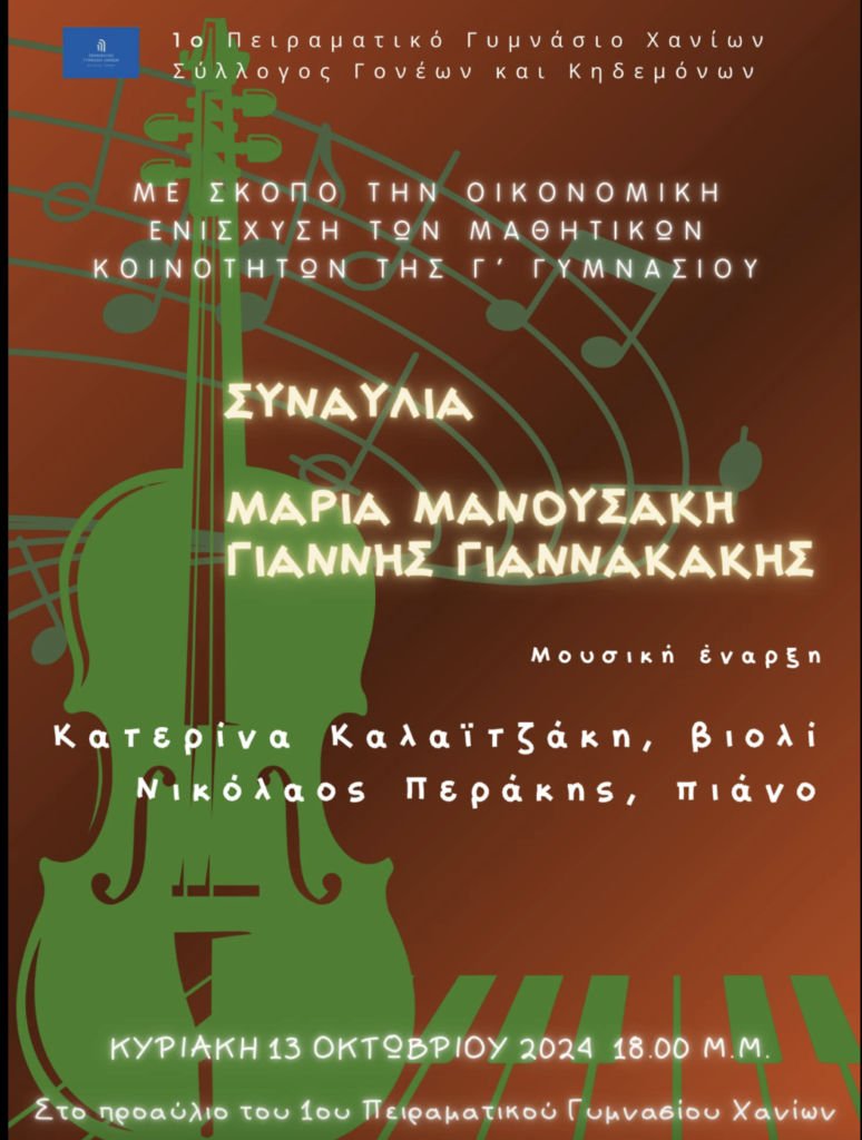 Venue: courtyard of the 1st Experimental High School, El. Venizelou 1, Chania (5 minutes’ walk from the Old Market Hall).