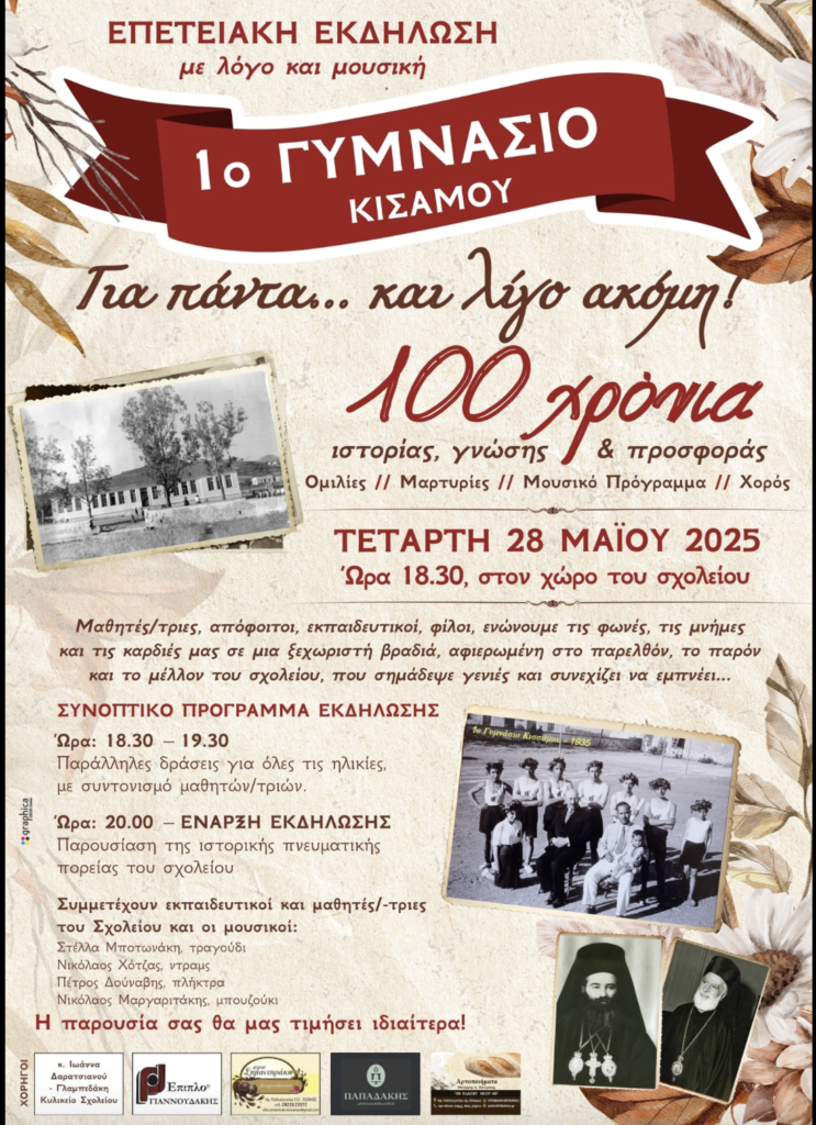 At this anniversary event, dedicated to the past, present and future of the 1st High School, students, teachers, graduates and friends join their voices.