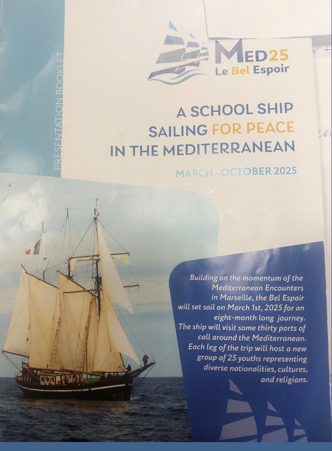 The Med 25 Le Bel Espoir is a school ship sailing for peace in the Mediterranean – a sailing journey across the Mediterranean to foster dialogue on peace and migration.