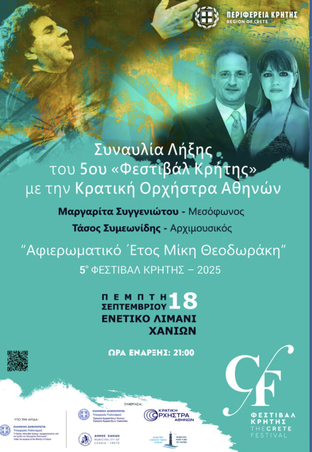 The Athens State Orchestra continues its events within the framework of the 5th Festival of Crete and of the Ministry of Culture’s Mikis Theodorakis Commemorative Year, for the 100th anniversary of the birth of the great composer.