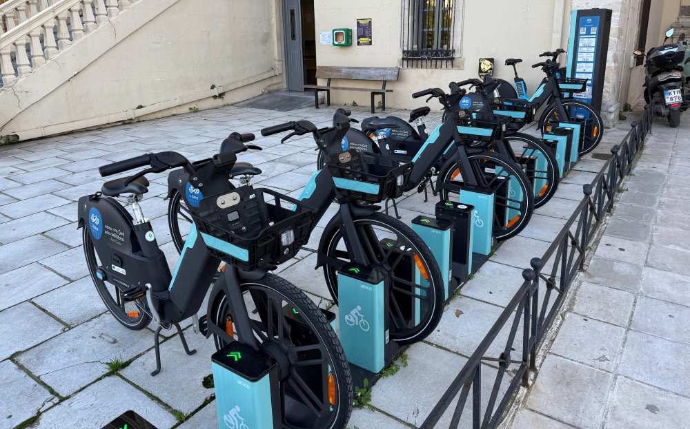 I-bikes parked in front of the Dikastiria in the Plateia Eleftherias, Chania. Photo: Chania.gr.