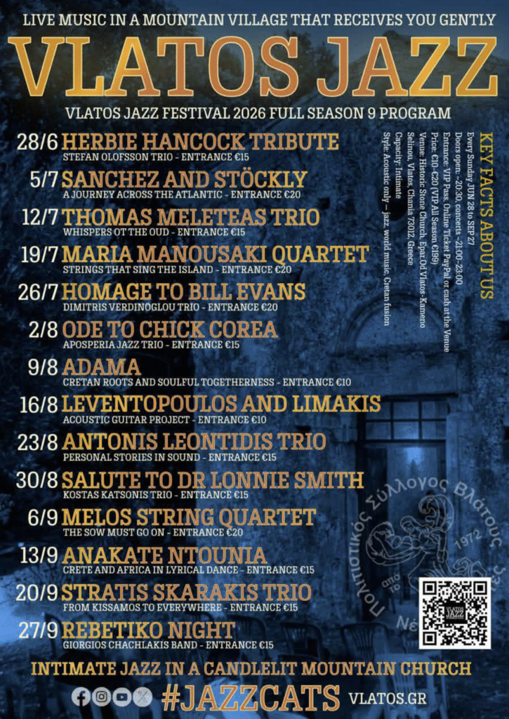 Cretan Jazz: History, Influences & Fusion Scene and Vlatos Concert Programme 2026